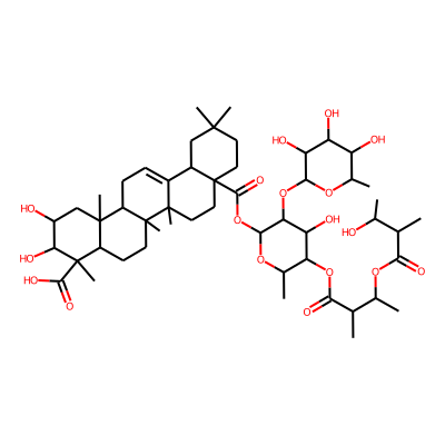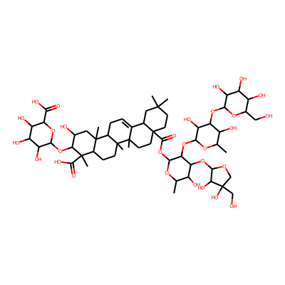 CC1(C)CCC2(C(=O)O)CCC3(C)C(=CCC4C5(C)CC(O)C(O)C(C)(C(=O)O)C5CCC43C)C2C1| HBA: | 6 | RingCount: | 5 |