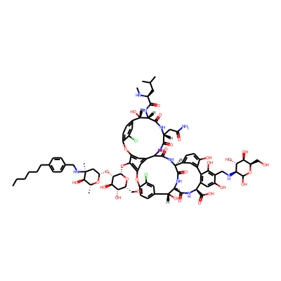 CNC(CC(C)C)C(=O)NC1C(=O)NC(CC(N)=O)C(=O)NC2C(=O)NC3C(=O)NC(C(=O)NC(C(=O)O)c4cc(O)c(CN)c(O)c4-c4cc3ccc4O)C(O)c3ccc(c(Cl)c3)Oc3cc2cc(c3O)Oc2ccc(cc2Cl)C1O| HBA: | 26 | RingCount: | 10 |