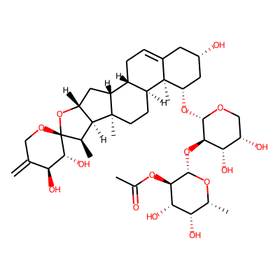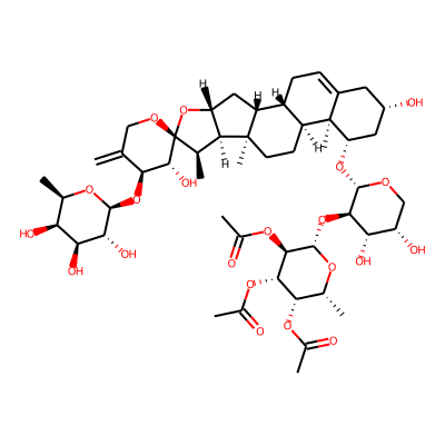 C=C1COC2(OC3CC4C5CC=C6CC(O)CC(O)C6(C)C5CCC4(C)C3C2C)C(O)C1O| HBA: | 6 | RingCount: | 6 |