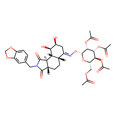 O=C1C2CCC3C(=NO)CC(O)C(O)C3C2C(=O)N1Cc1ccc2c(c1)OCO2| HBA: | 9 | RingCount: | 5 |