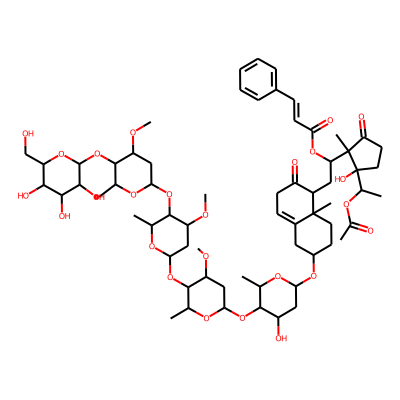 CC(=O)OC(C)C1(O)CCC(=O)C1(C)C(CC1C(=O)CC=C2CC(O)CCC21C)OC(=O)C=Cc1ccccc1| HBA: | 8 | RingCount: | 4 |