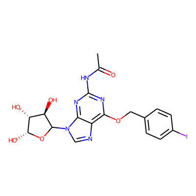 CC(=O)Nc1nc2c(c(OCc3ccc(I)cc3)n1)N=C[N]2| HBA: | 7 | RingCount: | 3 |