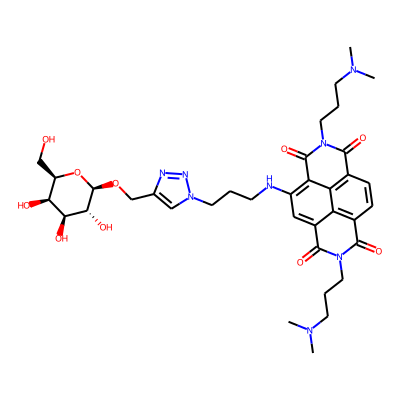 CN(C)CCCN1C(=O)c2ccc3c4c(c(NCCCn5cc(CO)nn5)cc(c24)C1=O)C(=O)N(CCCN(C)C)C3=O| HBA: | 13 | RingCount: | 5 |