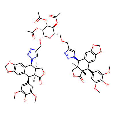 COCc1cn(C2c3cc4c(cc3C(c3cc(OC)c(O)c(OC)c3)C3C(=O)OCC32)OCO4)nn1| HBA: | 11 | RingCount: | 6 |