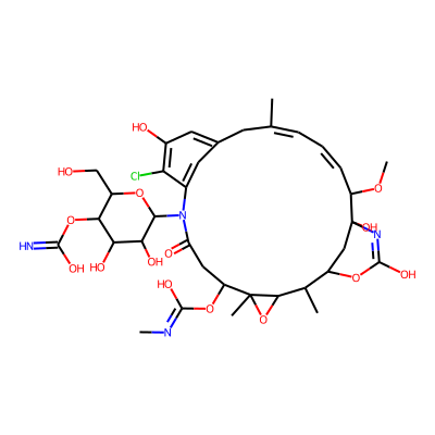 CN=C(O)OC1CC(=O)Nc2cc(cc(O)c2Cl)CC(C)=CC=CC(OC)C2(O)CC(OC(O)=N2)C(C)C2OC12C| HBA: | 12 | RingCount: | 4 |