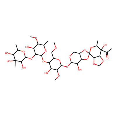 CC(=O)C1(O)C(C)OC2(OC3COC(O)C(O)C3O2)C2OCOC21| HBA: | 10 | RingCount: | 4 |