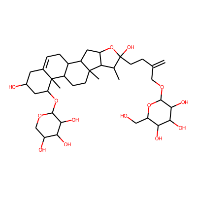 C=C(CO)CCC1(O)OC2CC3C4CC=C5CC(O)CC(O)C5(C)C4CCC3(C)C2C1C| HBA: | 5 | RingCount: | 5 |