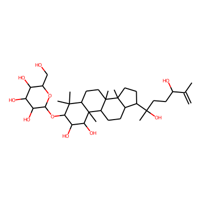 C=C(C)C(O)CCC(C)(O)C1CCC2(C)C1CCC1C3(C)C(O)C(O)C(O)C(C)(C)C3CCC12C| HBA: | 5 | RingCount: | 4 |