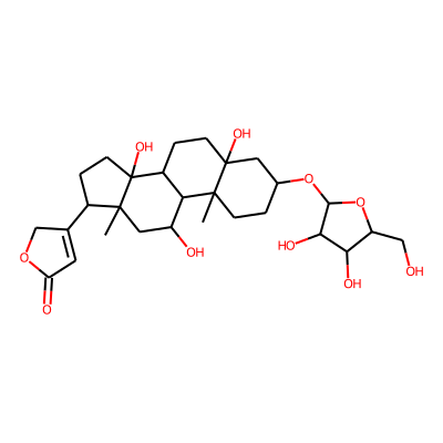 CC12CCC(O)CC1(O)CCC1C2C(O)CC2(C)C(C3=CC(=O)OC3)CCC12O| HBA: | 6 | RingCount: | 5 |