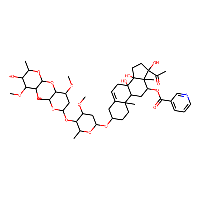 CC(=O)C1(O)CCC2(O)C3(O)CC=C4CC(O)CCC4(C)C3CC(OC(=O)c3cccnc3)C12C| HBA: | 8 | RingCount: | 5 |