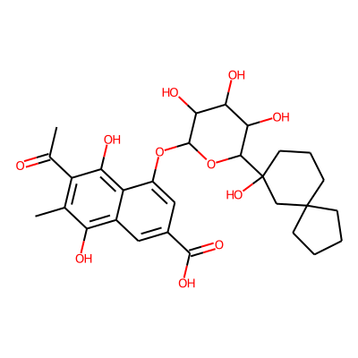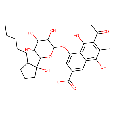 CC(=O)c1c(C)c(O)c2cc(C(=O)O)cc(O)c2c1O| HBA: | 6 | RingCount: | 2 |