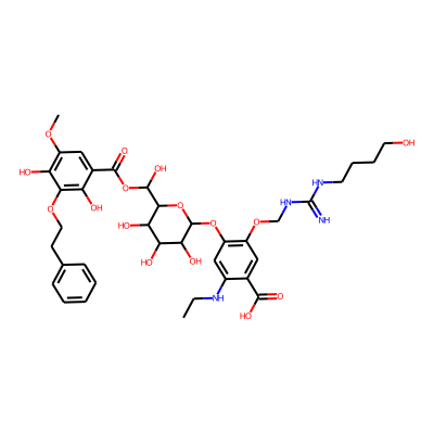 CCNc1cc(O)c(OCNC(=N)NCCCCO)cc1C(=O)O| HBA: | 9 | RingCount: | 1 |
