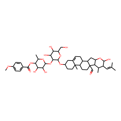 CC(C)=CC1C(O)OC2CC3C4CC=C5CC(O)CCC5(C)C4CCC3(C=O)C2C1C| HBA: | 4 | RingCount: | 5 |