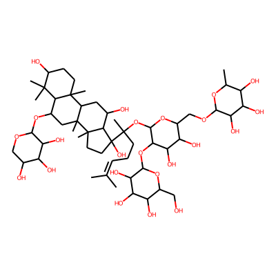 CC(C)=CCCC(C)(O)C1(O)CCC2(C)C1C(O)CC1C3(C)CCC(O)C(C)(C)C3C(O)CC12C| HBA: | 5 | RingCount: | 4 |