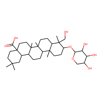 CC1(C)CCC2(C(=O)O)CCC3(C)C(CCC4C5(C)CCC(O)C(C)(CO)C5CCC43C)C2C1| HBA: | 4 | RingCount: | 5 |