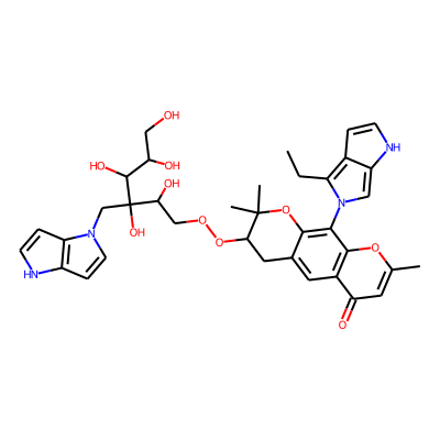 CCc1c2cc[nH]c2cn1-c1c2c(cc3c(=O)cc(C)oc13)CC(O)C(C)(C)O2| HBA: | 6 | RingCount: | 5 |