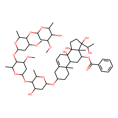 CC(O)C1(O)CCC2(O)C3(O)CC=C4CC(O)CCC4(C)C3CC(OC(=O)c3ccccc3)C12C| HBA: | 7 | RingCount: | 5 |