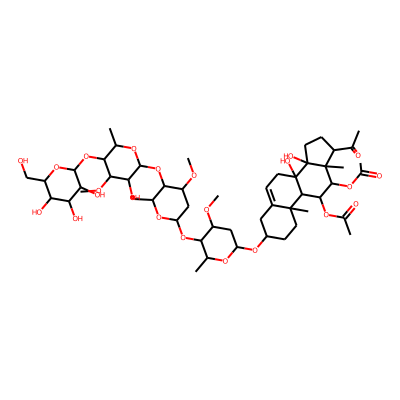 CC(=O)OC1C2C3(C)CCC(O)CC3=CCC2(O)C2(O)CCC(C(C)=O)C2(C)C1OC(C)=O| HBA: | 8 | RingCount: | 4 |
