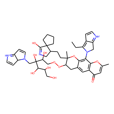 CCC1=C2C=C[NH+]=C2CN1c1c2c(cc3c(=O)cc(C)oc13)CC(O)C(C)(CCC1CN=C(O)C13CCCC3)O2| HBA: | 8 | RingCount: | 7 |