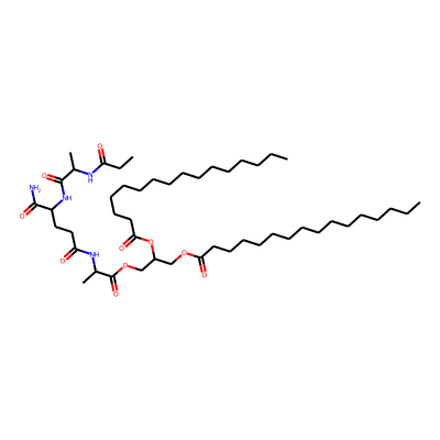 CCCCCCCCCCCCCCCC(=O)OCC(COC(=O)C(C)NC(=O)CCC(NC(=O)C(C)NC(=O)CC)C(N)=O)OC(=O)CCCCCCCCCCCCCCC| HBA: | 14 | RingCount: | 0 |