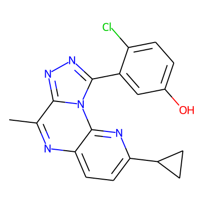 Cc1nc2ccc(C3CC3)nc2n2c(-c3cc(O)ccc3Cl)nnc12| HBA: | 6 | RingCount: | 5 |