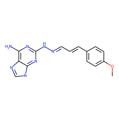 COc1ccc(C=CC=NNc2nc(N)c3c(n2)[N]C=N3)cc1| HBA: | 8 | RingCount: | 3 |
