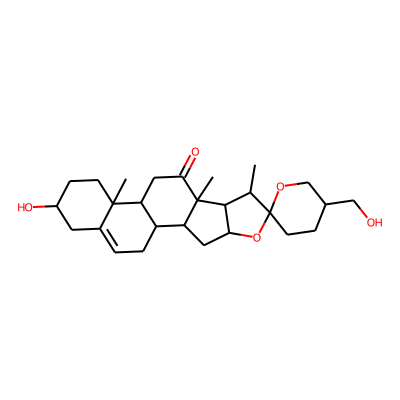 CC1C2C(CC3C4CC=C5CC(O)CCC5(C)C4CC(=O)C32C)OC12CCC(CO)CO2| HBA: | 5 | RingCount: | 6 |