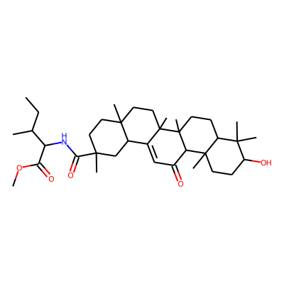 CCC(C)C(NC(=O)C1(C)CCC2(C)CCC3(C)C(=CC(=O)C4C5(C)CCC(O)C(C)(C)C5CCC43C)C2C1)C(=O)OC| HBA: | 6 | RingCount: | 5 |