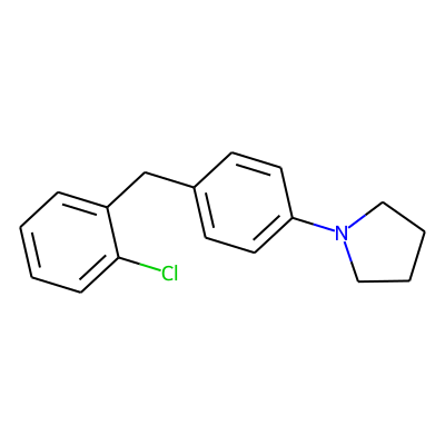 Clc1ccccc1Cc1ccc(N2CCCC2)cc1| HBA: | 1 | RingCount: | 3 |