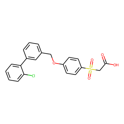 O=C(O)CS(=O)(=O)c1ccc(OCc2cccc(-c3ccccc3Cl)c2)cc1Sugarmoiety: