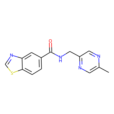 Cc1cnc(CNC(=O)c2ccc3scnc3c2)cn1| HBA: | 5 | RingCount: | 3 |