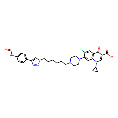 O=CNc1ccc(-c2cn(CCCCCCN3CCN(c4cc5c(cc4F)c(=O)c(C(=O)O)cn5C4CC4)CC3)nn2)cc1| HBA: | 11 | RingCount: | 6 |