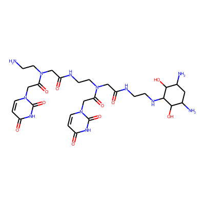 NCCN(CC(=O)NCCN(CC(=O)NCCNC1C(O)C(N)CC(N)C1O)C(=O)Cn1ccc(=O)[nH]c1=O)C(=O)Cn1ccc(=O)[nH]c1=O| HBA: | 22 | RingCount: | 3 |