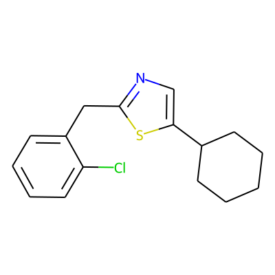 Clc1ccccc1Cc1ncc(C2CCCCC2)s1| HBA: | 1 | RingCount: | 3 |