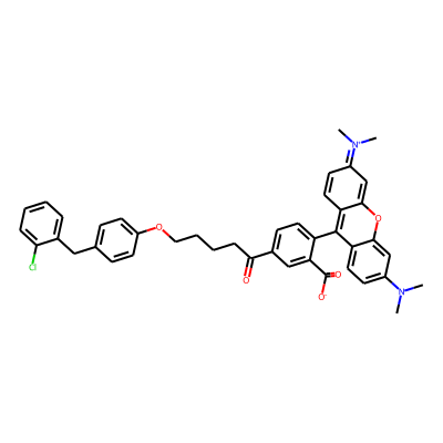 CN(C)c1ccc2c(-c3ccc(C(=O)CCCCOc4ccc(Cc5ccccc5Cl)cc4)cc3C(=O)[O-])c3ccc(=[N+](C)C)cc-3oc2c1| HBA: | 7 | RingCount: | 6 |