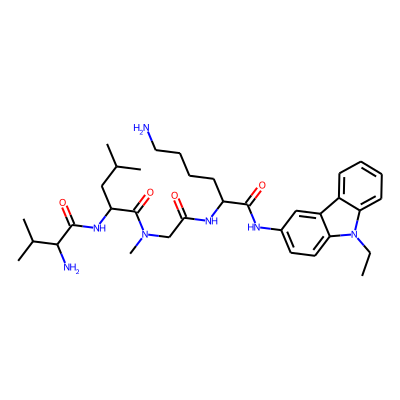 CCn1c2ccccc2c2cc(NC(=O)C(CCCCN)NC(=O)CN(C)C(=O)C(CC(C)C)NC(=O)C(N)C(C)C)ccc21Sugarmoiety: