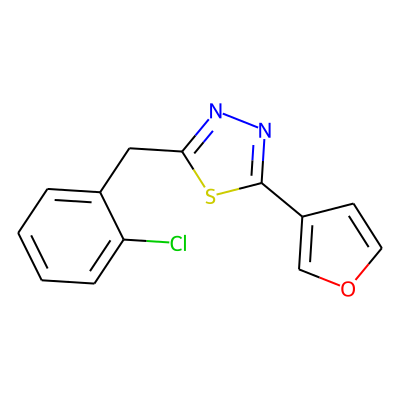 Clc1ccccc1Cc1nnc(-c2ccoc2)s1| HBA: | 3 | RingCount: | 3 |