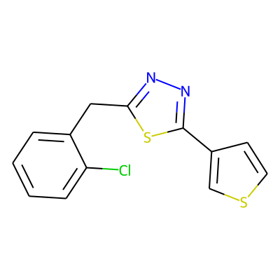 Clc1ccccc1Cc1nnc(-c2ccsc2)s1| HBA: | 2 | RingCount: | 3 |