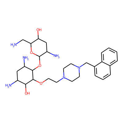 NCC1OC(OC2C(N)CC(N)C(O)C2OCCN2CCN(Cc3cccc4ccccc34)CC2)C(N)CC1OSugarmoiety: