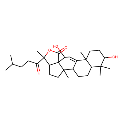 CC(C)CCC(=O)C1(C)OC(=O)C23C(O)C=C4C(CCC5C4(C)CCC(O)C5(C)C)C2(C)CCC13| HBA: | 5 | RingCount: | 5 |