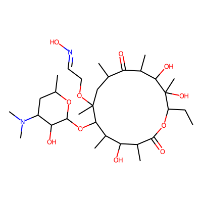 CCC1OC(=O)C(C)C(O)C(C)C(OC2OC(C)CC(N(C)C)C2O)C(C)(OCC=NO)CC(C)C(=O)C(C)C(O)C1(C)O| HBA: | 13 | RingCount: | 2 |