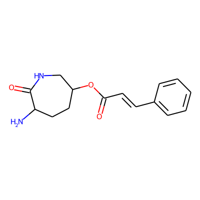 NC1CCC(OC(=O)C=Cc2ccccc2)CNC1=O| HBA: | 5 | RingCount: | 2 |