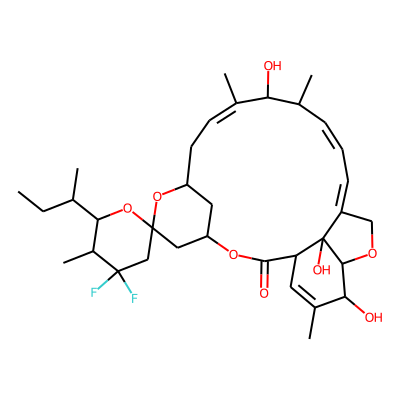 CCC(C)C1OC2(CC3CC(CC=C(C)C(O)C(C)C=CC=C4COC5C(O)C(C)=CC(C(=O)O3)C45O)O2)CC(F)(F)C1C| HBA: | 8 | RingCount: | 5 |