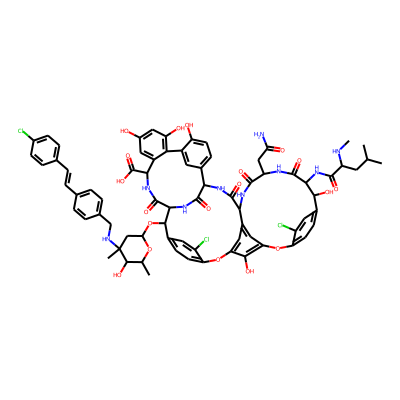 CNC(CC(C)C)C(=O)NC1C(=O)NC(CC(N)=O)C(=O)NC2C(=O)NC3C(=O)NC(C(=O)NC(C(=O)O)c4cc(O)cc(O)c4-c4cc3ccc4O)C(OC3CC(C)(NCc4ccc(C=Cc5ccc(Cl)cc5)cc4)C(O)C(C)O3)c3ccc(c(Cl)c3)Oc3cc2cc(c3O)Oc2ccc(cc2Cl)C1O| HBA: | 28 | RingCount: | 13 |