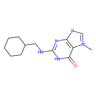 C[N+]1=C[N]c2nc(NCC3CCCCC3)[nH]c(=O)c21| HBA: | 6 | RingCount: | 3 |