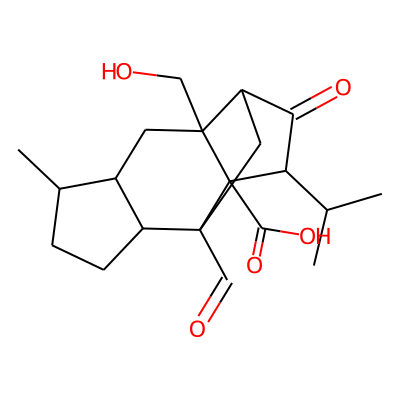 CC(C)C1C(=O)C2CC3(C=O)C4CCC(C)C4CC2(CO)C13C(=O)O| HBA: | 5 | RingCount: | 4 |