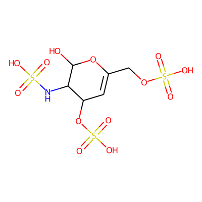 O=S(=O)(O)NC1C(O)OC(COS(=O)(=O)O)=CC1OS(=O)(=O)O| HBA: | 14 | RingCount: | 1 |