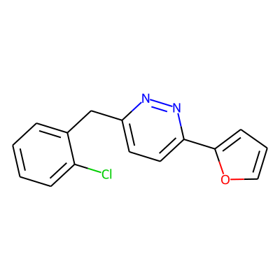 Clc1ccccc1Cc1ccc(-c2ccco2)nn1| HBA: | 3 | RingCount: | 3 |