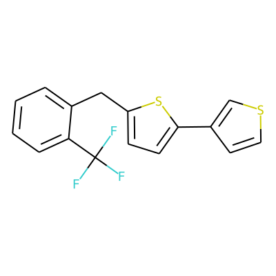 FC(F)(F)c1ccccc1Cc1ccc(-c2ccsc2)s1| HBA: | 0 | RingCount: | 3 |