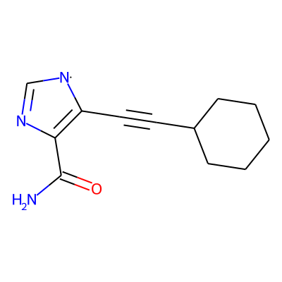 NC(=O)C1=C(C#CC2CCCCC2)[N]C=N1| HBA: | 4 | RingCount: | 2 |